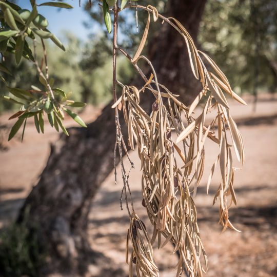 • Quando X. fastidiosa colonizza l’olivo (Olea europaea L.), provoca:          occlusione dei vasi xilematici, con conseguente stress idrico interno e sintomi visibili quali siccità delle foglie e bruciature margino-fogliari, disseccamento dei rami e perdita di vigore della chioma che, nei casi avanzati, portano alla morte dell’albero.